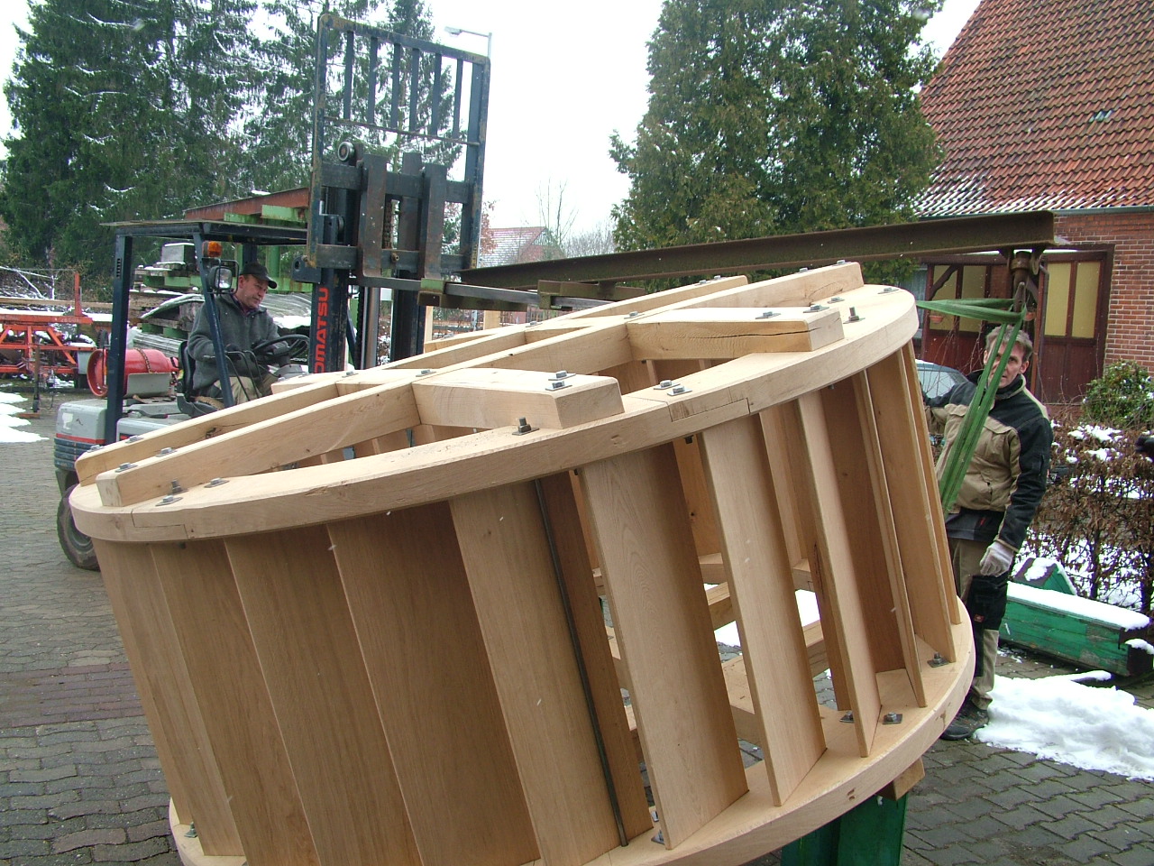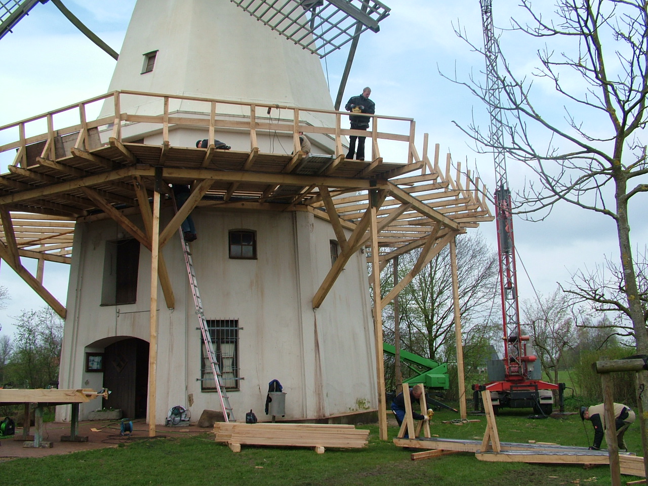 Mühlenbauhof Petershagen-FrilleTechnisches Zentrum und Sitz der Geschäftsstelle Die denkmalgerechte Unterhaltung und Instandsetzung der Mühlen im Kreis Minden-Lübbecke wird gewährleistet durch den Mühlenbauhof in Petershagen-Frille. Holzverschindelungen, Restaurierung historischer Mahlgänge, Bau von Wasserrädern oder Neubau kompletter Segelflügel aus Holz oder Stahl: Der Mühlenbauhof ist da gefordert, wo die Grenzen ehrenamtlicher Arbeit erreicht sind. Das Wissen über den Umgang mit alten Werkstoffen und das mühlentechnische Detailwissen, das die technischen Leiter und die Fachhandwerker des Mühlenbauhofs über Jahrzehnte erworben haben, ist unverzichtbar für die Instandhaltung des Freilichtmuseums Westfälische Mühlenstraße. Der Mühlenverein im Kreis Minden-Lübbecke e.V. verfügt mit dem Mühlenbauhof über eine Institution, die in Deutschland einzigartig ist. Angesiedelt ist der Mühlenbauhof in einem ehemaligen bäuerlichen Anwesen, das der Kreis Minden-Lübbecke 1983 erworben hatte. Mit Unterstützung durch die NRW-Stiftung wurde das Gebäude den zukünftigen Anforderungen entsprechend umgebaut. 1988 konnte der Mühlenverein mit seinem Bauhof hier einziehen. Außerdem sind hier die Verwaltung des Mühlenvereins und die Geschäftsstelle der Deutschen Gesellschaft für Mühlenkunde und Mühlenerhaltung (DGM) e.V. untergebracht. Heute beherbergt das Anwesen Büro- und Sozialräume, eine Versammlungsdiele, Holz- und Metallwerkstätten, Lagerhallen und Gästezimmer sowie das Mühlen-Infozentrum. Das Team in Petershagen-Frille besteht aus einem Dipl.-BauIng. als technischem Leiter, vier Fachhandwerkern und zwei Verwaltungskräften. Die Geschäftsführung besteht aus Herrn Friedrich Rohlfing und Herrn Frank Breitenfeld. Kontakt: Mühlenverein Minden-Lübbecke - Geschäftsstelle - Mühlenbauhof Schwarzer Weg 2 32469 Petershagen Tel.: 05702 / 2694 | Der Mühlenverein im Kreis Minden-Lübbecke e.V. bedankt sich für die Förderung durch die NRW-Stiftung. Sommerfest auf dem Mühlenbauhof Werkstatt Werkstatt Werkstatt Versammlungsdiele |